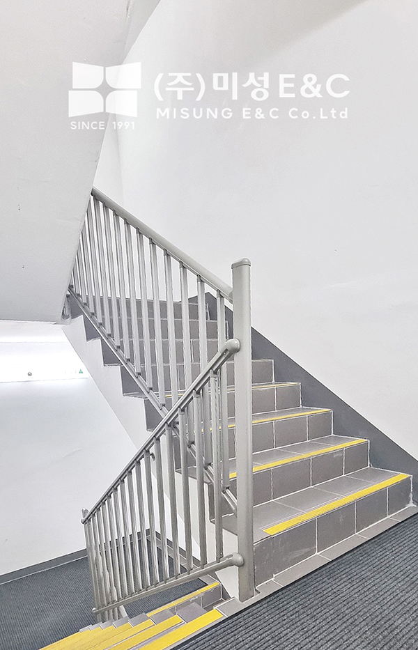 지하 4층부터 21층까지 전 계단에는 미성이앤씨 계단핸드레일이 안전하게 시공되어 있습니다.